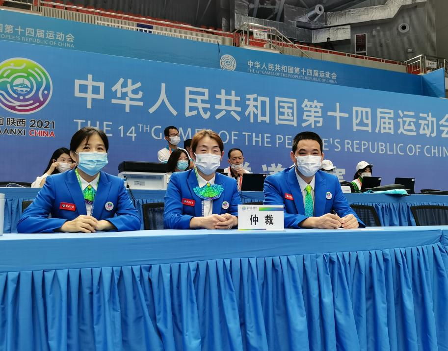 运动训练学院张佩莉、郑峰、于昕、黄环、张龙、王伟、南海涛、刘志云等20余名师生分别在手球、曲棍球、棒球、垒球、橄榄球、蹦床、游泳、田径、空手道等项目竞委会担任不同的岗位,他们坚守岗位,履职尽责,圆满的完成了比赛任务,受到了各项目竞委会的一致好评。学院辅导员南海涛是棒球竞委会驻村联络员,积极与村委会、棒球竞委会沟通协调,保障参赛队伍各项需求,为运动员取得好成绩贡献自己的力量,被全运村授予“敬业之星”荣誉称号;2019级学生朱子彤,在第十四届全国运动会蹦床、艺术体操项目竞委会竞赛组织处工作,担任蹦床、艺术体操竞委会驻全运村联络员一职,该同志奉献精神强,封闭食宿在全运村,不讲困难、不提条件、加班加点、默默奉献,利用个人专业优势出色的完成了技术官员在全运村的服务保障工作和竞委会交办的其他竞赛组织工作,体现出极佳的专业素养,获得了竞委会和全运村的高度认可,被全运村授予“党员保赛模范岗和每日之星”荣誉称号;学院党政办公室副主任刘志云,在十四运会担任空手道项目联络官,他尽职尽责,勇于担当,积极与组委会、中国空手道协会、省拳跆中心及项目竞委会沟通协调,同空手道项目竞委会工作人员密切配合,为十四运空手道项目圆满举办做出了积极的贡献,受到了空手道项目竞委会的感谢。