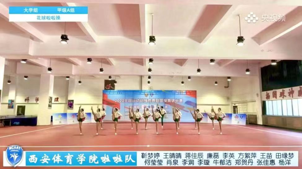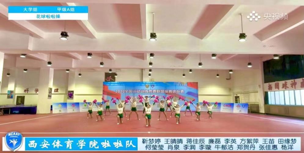 在校、院两级领导的关怀下,在教务处、竞训处、后勤管理处等部门的大力支持下,我校艺术学院操舞教研室许波老师带领20名学生(12名本科生、8名研究生)组成校啦啦操代表队,在不影响学生的正常上课的前提下,利用课余时间、双休日休息期间,仍然坚持努力训练,克服各种困难,积极备战。