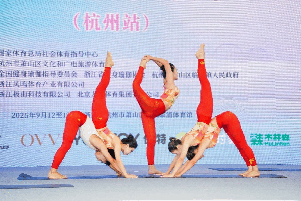 2025年全国健身瑜伽公开赛(杭州站)于9月12—14日在浙江省杭州市萧山区萧山临浦体育馆盛大举行。赛事由国家体育总局社会体育指导中心主办,共吸引全国55支代表队同场竞技。我校健身瑜伽代表队由体育教育训练学院统筹,以及竞训处领导大力支持下,由武洛生院长担任领队,于巴锁、孙旭两位教师担任教练,向稼俊、王心怡老师参加教工组,5名队员参加院校组。短短一周集训,师生每天8:00—22:00高强度打磨,最终斩获11项殊荣,并荣获“优秀代表队”称号。
