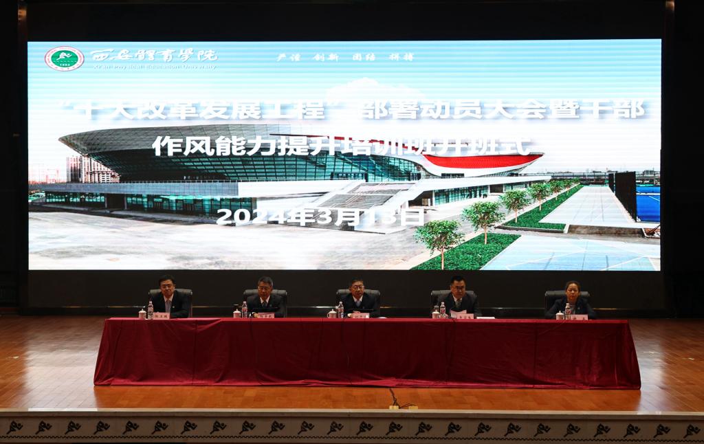 基建处、财务处、人事处、后勤管理处4个牵头部门负责人依次表态发言,表示要凝心聚力,锚定目标、统一思想,扎实推进学校十大改革发展工程稳步实施,为我校奋力迈向体育特色一流大学、进入第一方阵的目标而不懈努力。