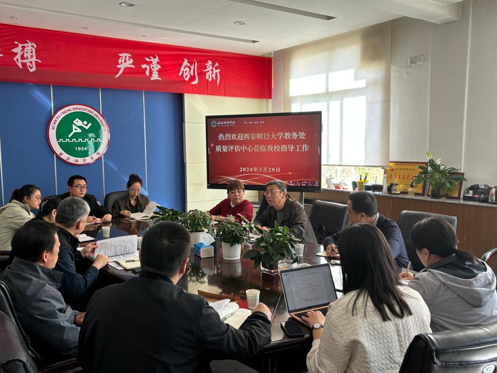 2024年3月29日,西安财经大学教学质量评估中心主任、教务处副处长褚诚德、教务处副处长刘若江、教学质量评估中心办公室主任秦鹏一行到我校进行交流座谈。我校教务处处长张葆欣、副处长姜健、王春英出席座谈会,教务处及评估办工作人员参加座谈,会议由张葆欣主持。