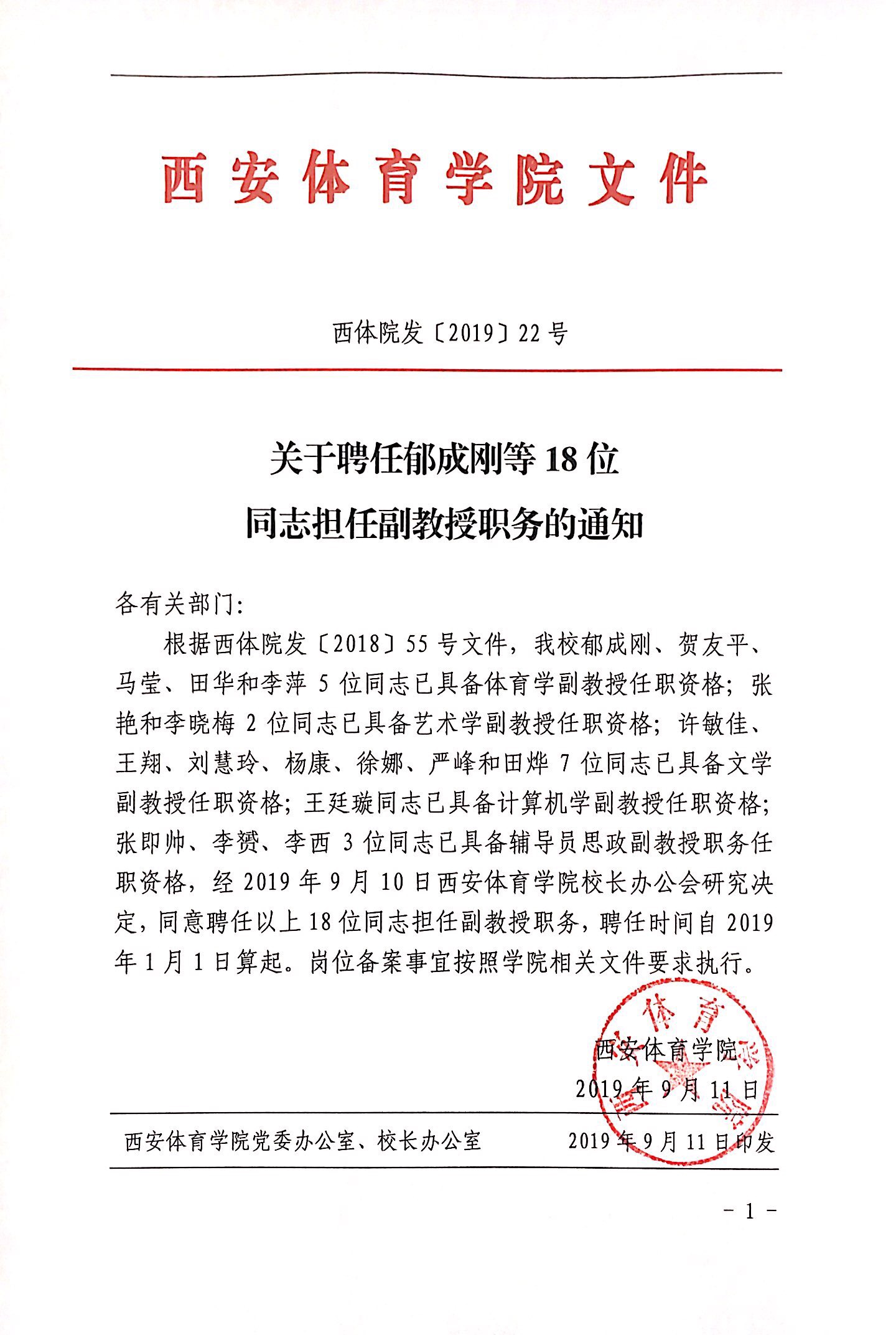 关于聘任郁成刚等18位同志担任副教授职务的通知