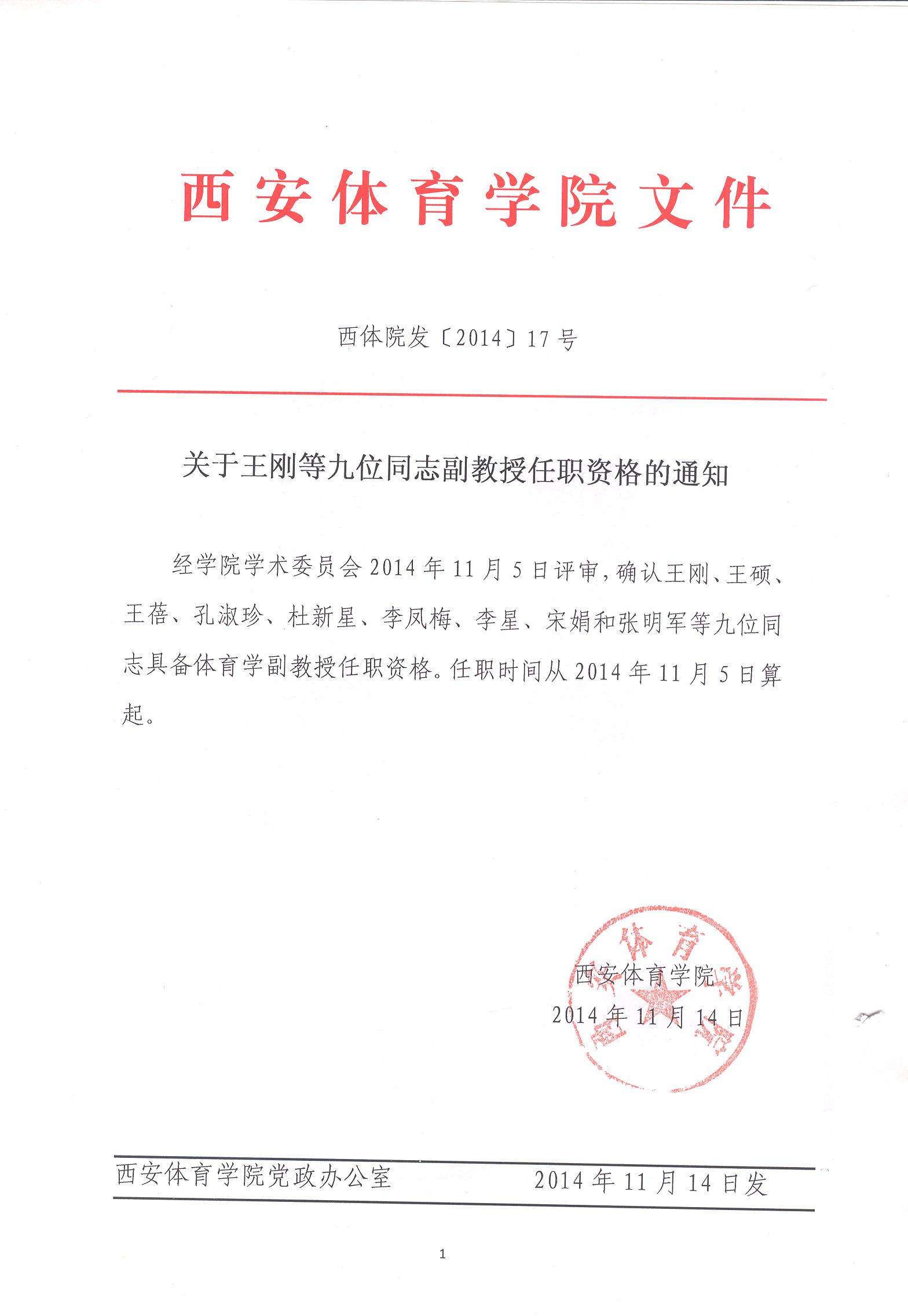 关于王刚等九位同志副教授任职资格的通知