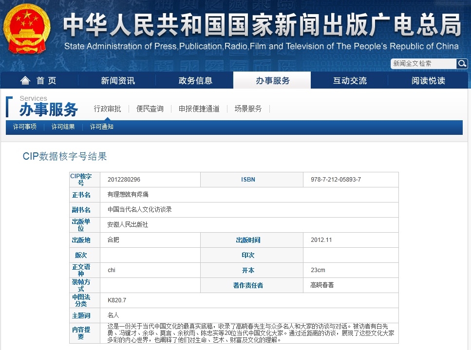 2、进入国家新闻出版广电总局CIP数据核字号数据库(http://www.gapp.gov.cn/)网页右下角有“CIP数据核字号验证”,输入论著对应信息进行查询,然后截图打印。