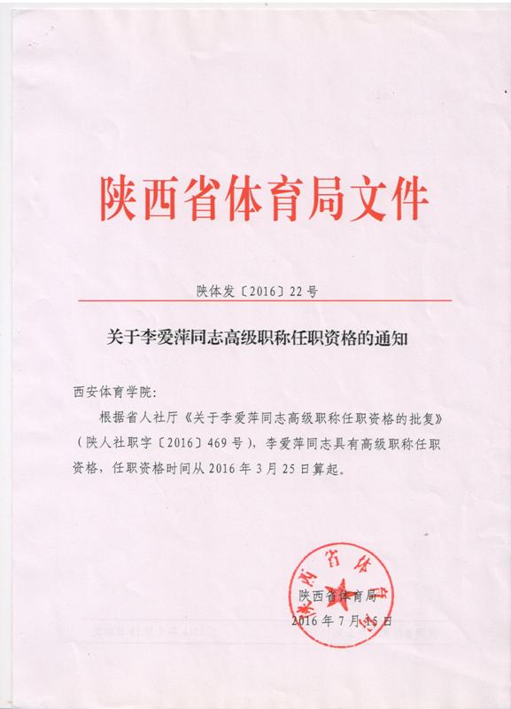 关于李爱萍同志高级职称任职资格的通知
