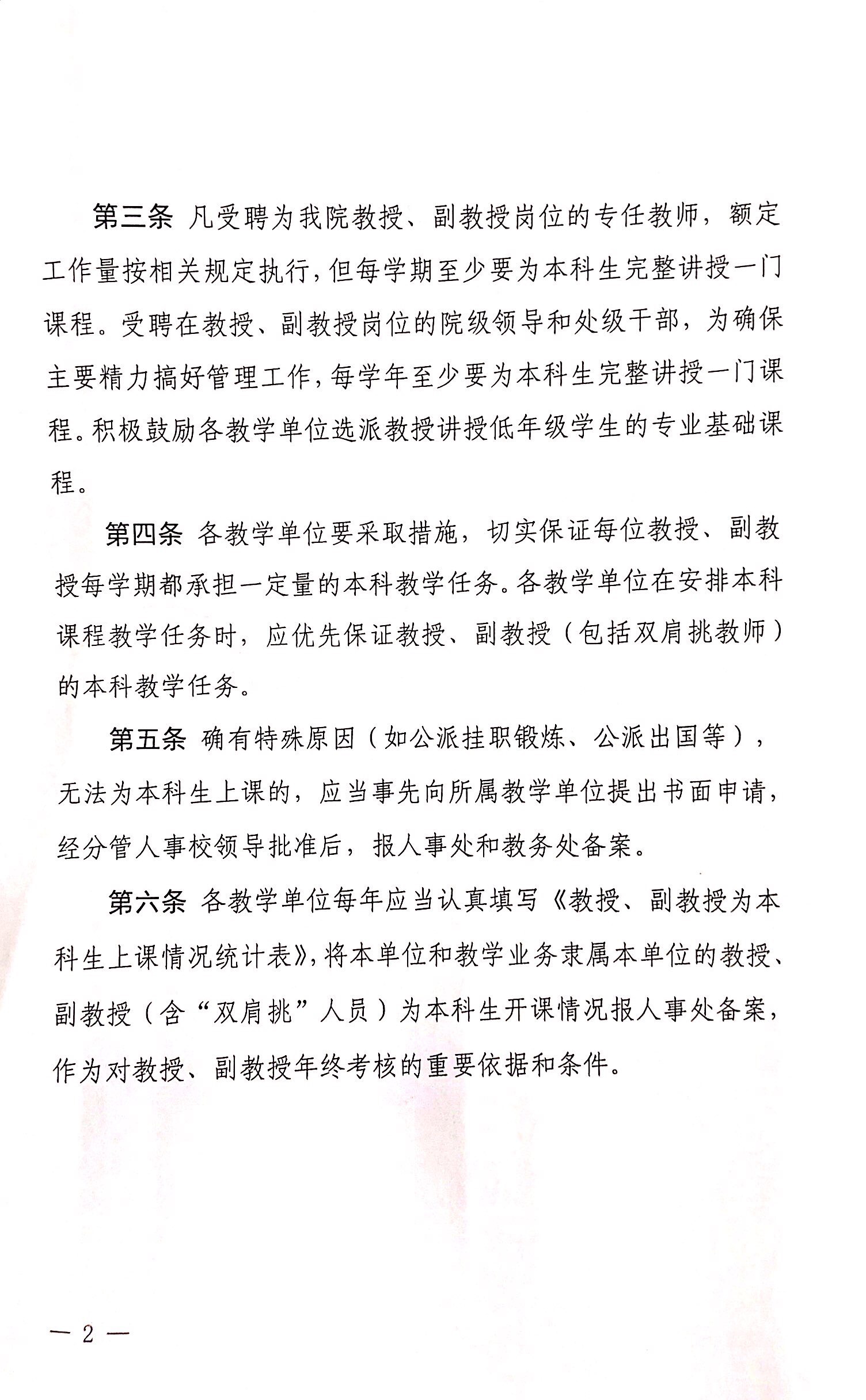 西安体育学院关于教授、副教授给本科生上课的规定