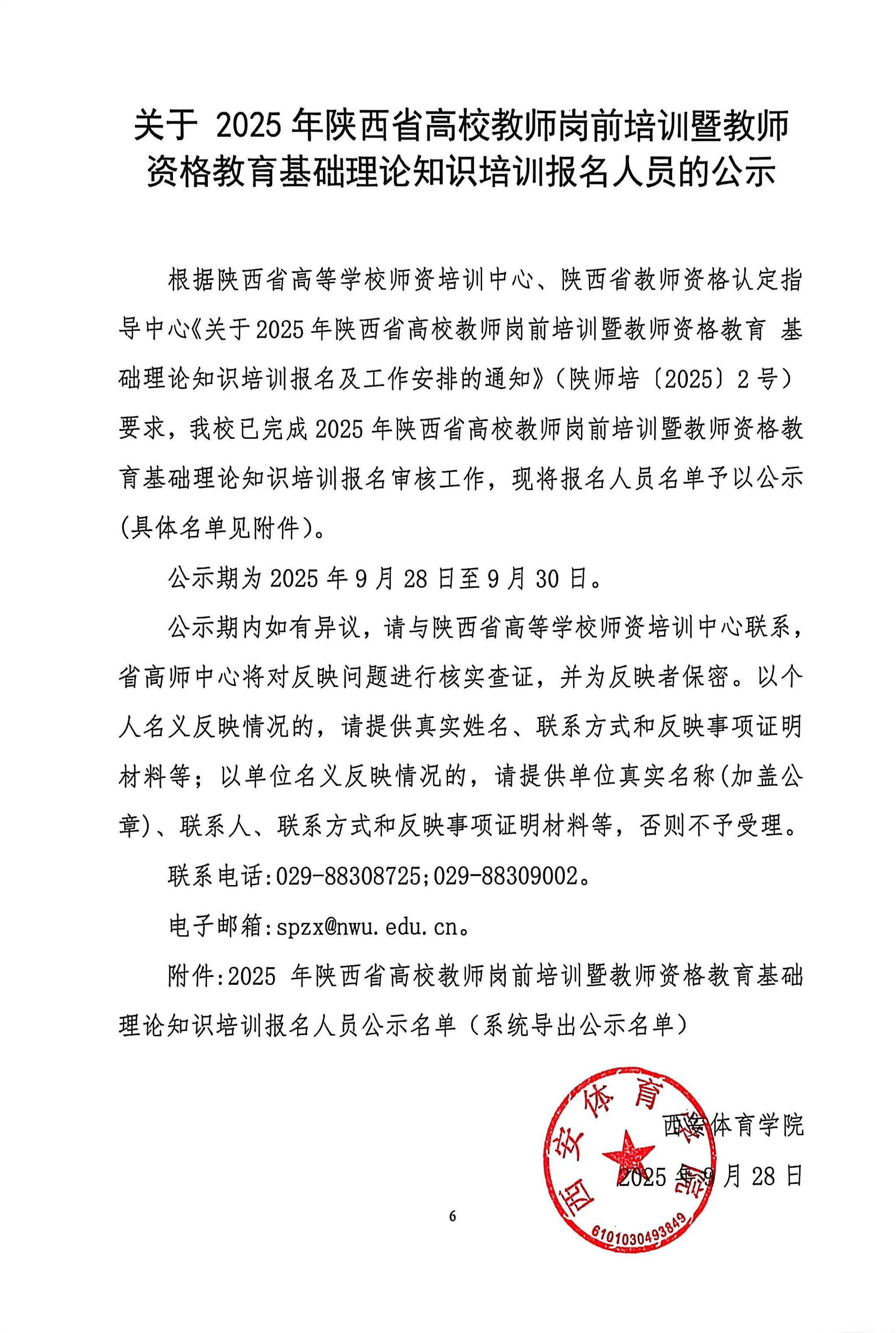 关于2025年陕西省高校教师岗前培训暨教师资格教育基础理论知识培训报名人员的公示