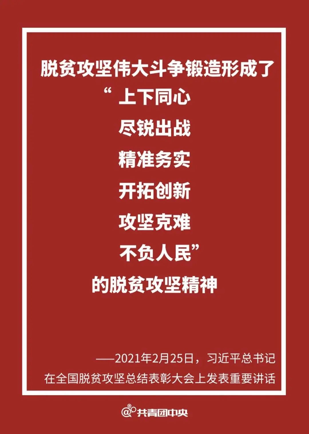 同时,“上下同心、尽锐出战、精准务实、开拓创新、攻坚克难、不负人民”的脱贫攻坚精神也激励大家开拓进取、奋发有为,拒绝骄傲自满、松劲歇脚,必须乘势而上、再接再厉、接续奋斗!