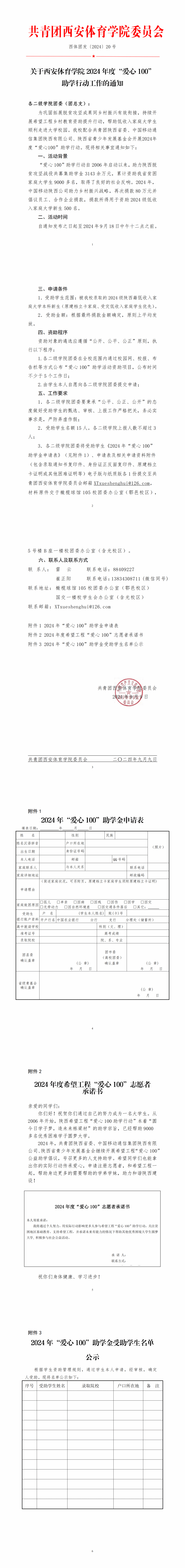 关于西安体育学院 2024 年度“爱心 100” 助学行动工作的通知