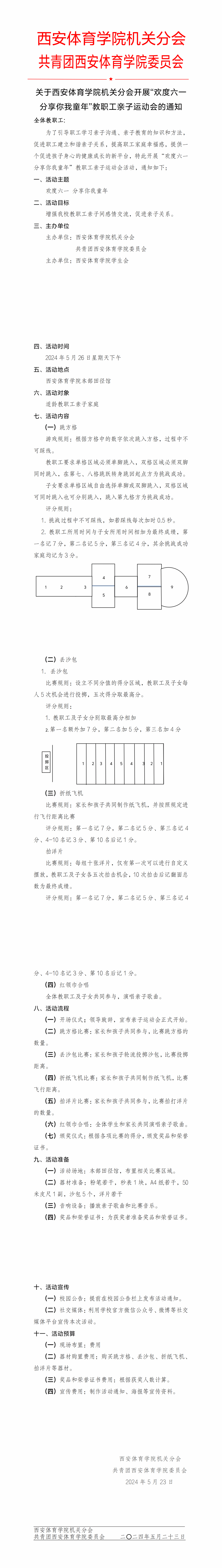 关于西安体育学院机关分会开展“欢度六一 分享你我童年”教职工亲子运动会的通知