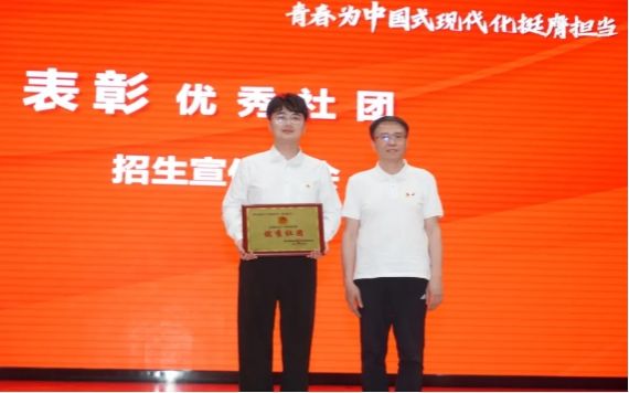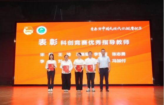 学工部部长、校团委书记马国华为支持共青团工作好老师、科创竞赛优秀指导教师颁奖