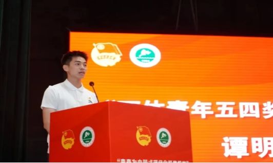 五四青年奖章学生获奖代表,运动训练学院谭明杰同学在发言中表示:感谢在西体老师们的谆谆教诲与悉心关怀,这份荣誉也激励我在未来的日子里勇担使命,团结带动青年朋友将家国情怀融入个人成长,为建设体育强国和美好的祖国贡献自己的青春力量!