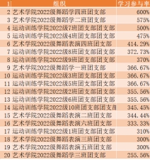 足球学院团委学习参与率不足60%,竞技体育学校团总支学习参与率不足10%。