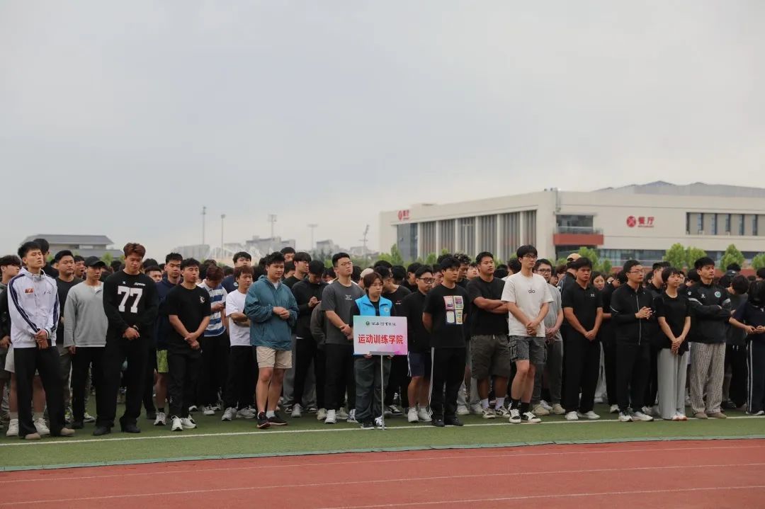 学生代表运动健康与科学学院2022级王峥和运动训练学院2023级桂伟涛发表了国旗下讲话,以百米赛跑为喻,号召大家要锚定目标,将个人成长与学校发展、时代需求相结合;保持自律坚持,在学习中厚积薄发;敢于突破自我,积极参与实践;重视团队协作,凝聚集体力量;以体育拼搏精神驱动自身全方位成长。