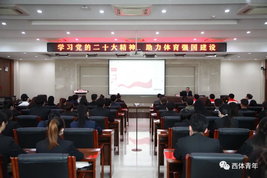 3月22日14:00,我校第十三期青马工程培训班在二号办公楼六楼报告厅举行了“学习党的二十大,助力体育强国建设”专题报告会。本次会议邀请到党委委员、党委宣传部部长张朝阳为同学们作《党的二十大精神学习体会——助力体育强国建设》的辅导报告。张朝阳部长一直从事高等教育的管理工作和党务工作,不仅有着深厚的理论功底和实践经验,还是团学领域资深的专家。