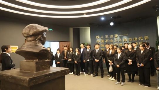 在讲解员的带领下,大学生骨干培训班全体成员依次参观了“苦难童年”、“赤诚报国”、“艰苦创业”、“科学求实”、“无私奉献”、“鞠躬尽瘁”、“亲切关怀”、“精神永存”等8个不同历史时期主题展馆,深入了解了铁人王进喜同志的各个重大历史生平节点和我国石油工业初期的艰辛发展历程。