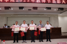 党委副书记、纪委书记、监察专员杨芳乾分别给荣获2022年“省级优秀教材二等奖”匡小红、魏娟丽、王秋茸;荣获2022年“省级优秀教材二等奖”(本科教育)张蕊、时倩;获批国家级、省部级研究基地苟波团队、潘玮敏团队、刘涛团队、柴王军团队颁奖。