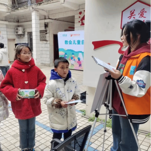 在活动现场,学生志愿者将儿童分为六组,以游戏体验的方式循环参加“海姆立克急救法、AED使用方法、结绳大比拼、毛毯担架计时赛、家具防倾倒、千斤顶抬升”6种防灾自救生存技能的学习,在志愿者耐心细致地讲解示范下,儿童青少年一一动手实践,当孩子们在体验中遇到困难时,学生志愿者不断给予鼓励,最终50名儿童成功掌握生存技能,顺利结业。