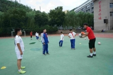 在延安职业技术学院附属小学,实践团成员们将为100余名小学生开展以盘带、配合、传球、停球、射门为主要内容的足球支教。支教期间,实践团成员们耐心地讲解足球场地、规则等基本内容和动作技术的要领,带领着他们做着训练前的热身训练。当感到枯燥时,实践团成员们还精心设计了有关增强球性球感的趣味游戏。在有限的时间里,实践团成员们运用专业的体育知识、教育理念与方法,为延安职业技术学院附属小学带来了一场内容丰富的足球理论与实践课。