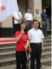 西安体育学院教务处处长张葆欣为足球学院红色先锋支教团授旗