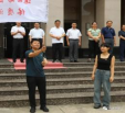 西安体育学院学工部部长王志刚为西安体育学院体质测量服务队授旗