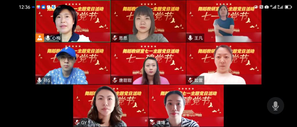 6月30日,建党节来临之际,舞蹈教研室党支部开展“弘扬伟大建党精神,为实现党的二十大提出的目标任务而团结奋斗”主题党日活动。活动形式围绕党史学习+红色舞蹈作品大家谈等形式开展。通过理论学习,在学思践悟中汲取精神⼒量,不断提升思想认同、情感认同和政治认同,增强践⾏初⼼使命的思想⾃觉和⾏动⾃觉。在红色舞蹈作品大家谈活动中,谭博老师给大家分享的舞蹈《中国妈妈》,用舞蹈的叙事手法给我们呈现了一种超越了国籍,跨越了时间和空间的伟大的母爱;高莹老师将自己参与舞剧《白毛女》的排演的体会与老师们分享。整个活动围绕红色与舞蹈主题展开,以深入开展学习习近平新时代中国特色社会主义思想主题教育为引领,用党的创新理论统一思想,统一意志,统一行动,弘扬伟大建党精神,牢记“三个务必”,推动全党为全面建设社会主义现代化国家,全面推进中华民族伟大复兴而团结奋斗。