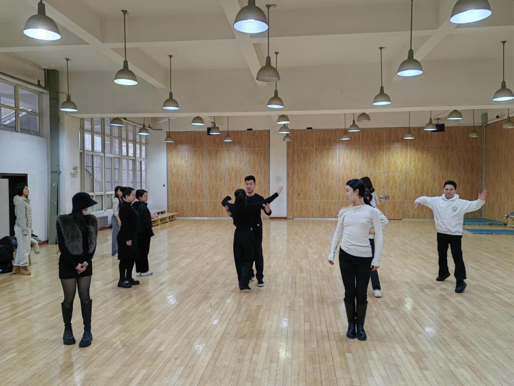 体育舞蹈教研室主任刘伟校主持备课会。刘伟校主要针对2023—2024第二学期全院《体育舞蹈》选修课三个舞种:慢三、伦巴和吉特巴教学内容选材、课程教法、重难点分析等进行讲解示范。授课组教师团队:王华、宋娟、张馨蕾、李韦璇、姜博、闫梅、丁想想、倪婷、赵青参加教研会议。并与研究生:单冬冬、汪静雅、徐珂、陈龙印、徐瑞璞、李瑞豪、范佳艺、张文轩进行组合练习。