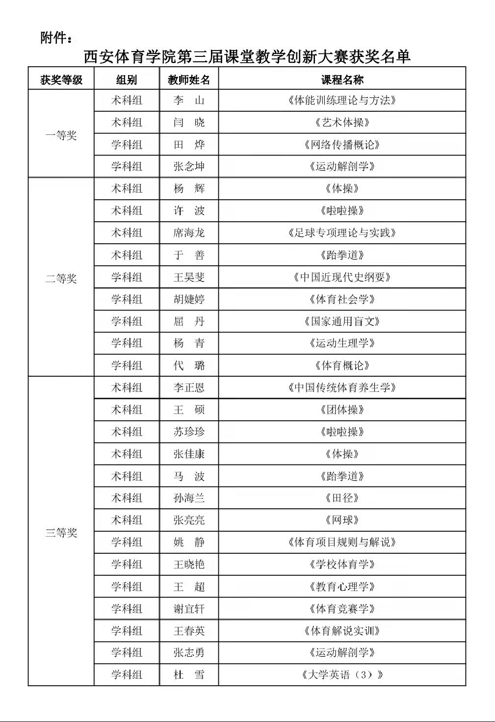 喜报|许波教授、闫晓教授、王硕副教授、苏珍珍老师在西安体育学院第三届课堂教学创新比赛中荣获佳绩