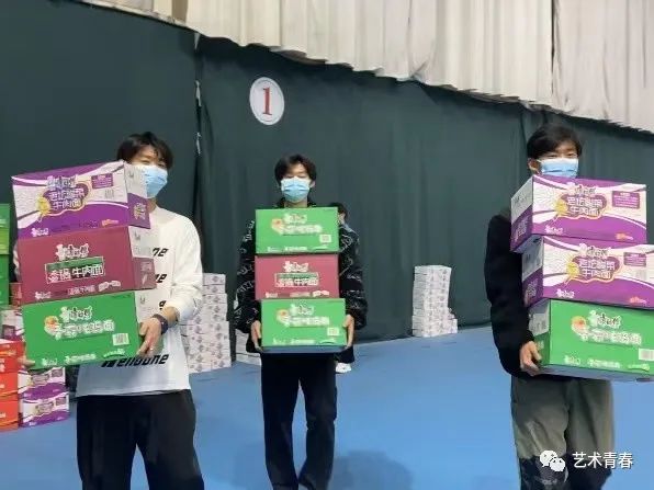 发放过程中,艺术学院学生会干部有序地从旧网球馆搬运物资到各宿舍楼下,由各年级辅导员及各宿舍楼长依次进行爱心食品的发放,领取过程中做到不扎堆,不聚集、有序排队。