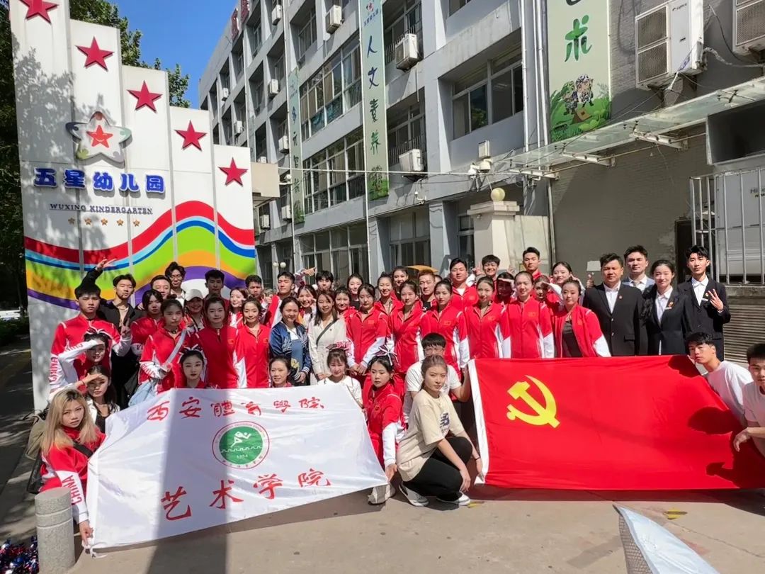 艺术学院学生党支部书记黄宏叶与刘薇带领艺术学院学生党员与大学生艺术团30余名学生一同前往国防科技大学试验训练基地五星幼儿园。