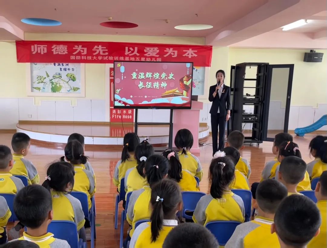 “血战湘江、四渡赤水、飞夺泸定桥……”宣讲中,宣讲员以“重温辉煌党史-长征精神”为题,用丰富的史料、生动的语言向小朋友们讲述了红军二万五千里长征途中一路走来的艰辛和不易。