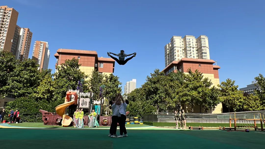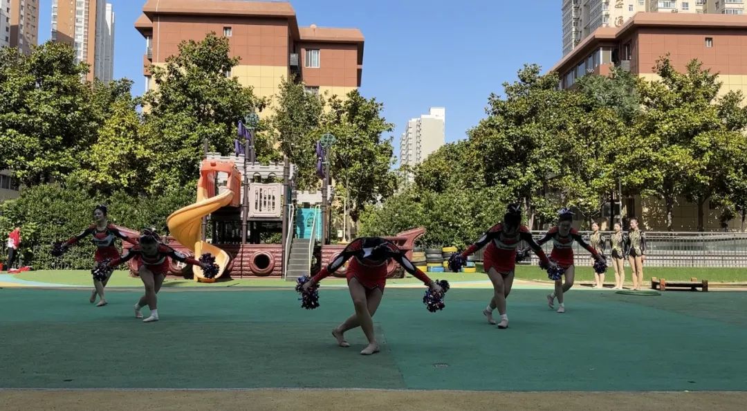 艺术学院大学生体育艺术表演团为五星幼儿园的小朋友们带来了精彩的体育艺术表演,用红色歌曲与排舞结合的形式,讴歌党的领导、讴歌社会主义新时代,营造浓厚的主题学习氛围,同时进一步促进红色校园体育文化推广,深入开展体教融合。