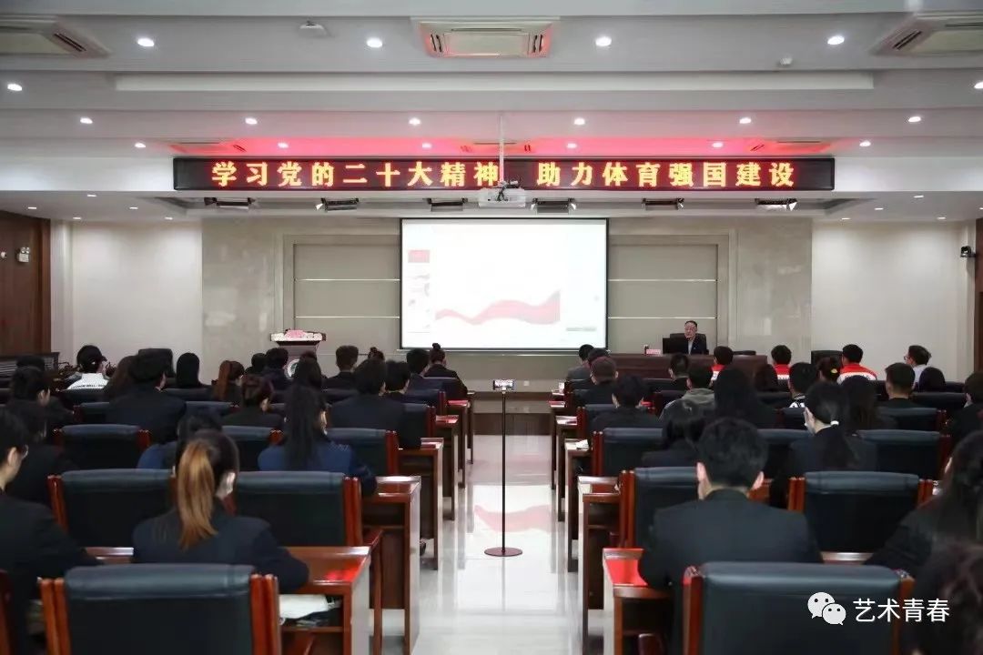 为了进一步学习体会党的二十大精神,助力体育强国建设,提升各二级学院团干部思想素质水平。西安体育学院团委于2023年3月22日下午在二号行政楼六楼报告厅组织“学习党的二十大精神,助力体育强国建设”专题报告会,我院学生干部参会。