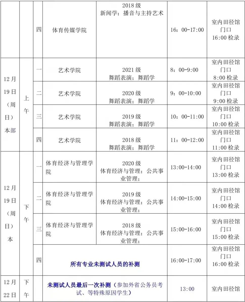 谨记自己体测时间,避免迟到