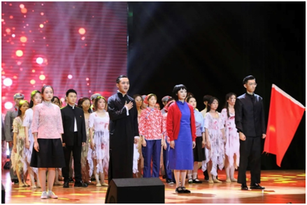 晚会以时间为主线,各二级学院师生深情演绎了在中国共产党带领下,中华民族百折不挠、砥砺前行的民族复兴历史。在体育新闻与传媒学院王瑞、严峰、郭维刚老师指导下,学院三十多位同学承担了主持、情景剧演绎、朗诵、老中青三代感恩致辞、视频制作、视频配音的演出任务,并圆满完成。