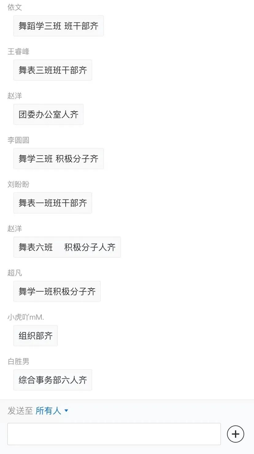 各班、各部门以及