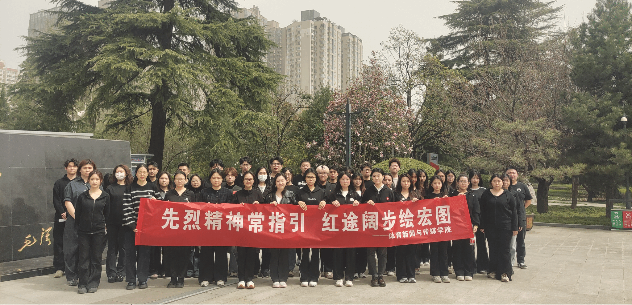 2025年4月体育新闻与传媒学院组织优秀学生代表、入党积极分子、预备党员及正式党员齐聚西安烈士陵园,开展了一场庄重的清明祭扫活动,以缅怀革命先烈,传承红色精神。