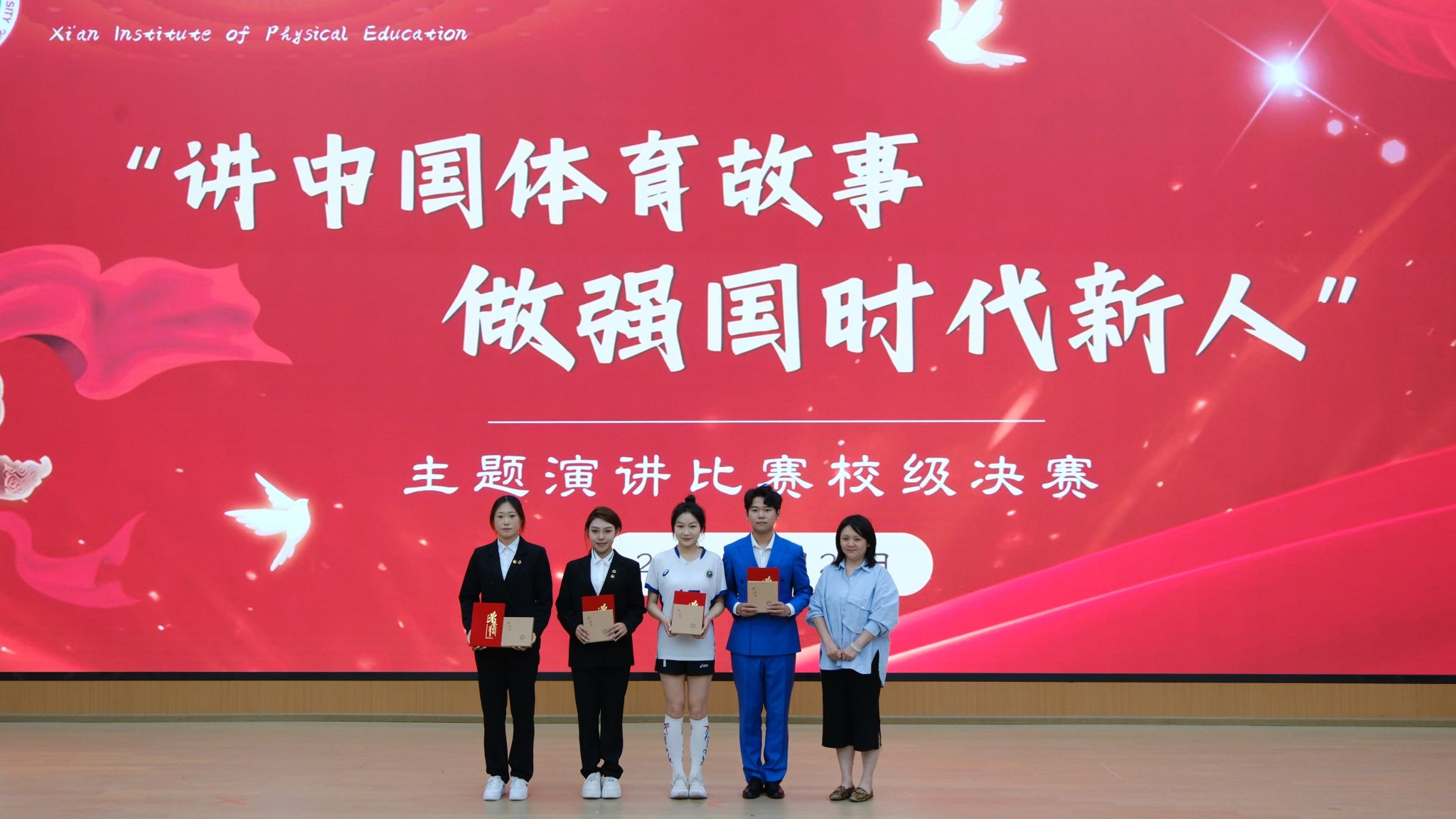 4月25日,由西安体育学院学生工作处、校团委主办,体育新闻与传媒学院承办、各二级学院团委、学生会协办的“讲中国体育故事,做强国时代新人”主题演讲比赛在西安体育学院鄠邑校区圆满结束。本次比赛是面向所有热爱体育文化、弘扬中国精神的全体在校本科生所进行的比赛。旨在弘扬体育精神,增强广大学生的爱国情怀和责任感,同时提升学生的演讲能力和综合素质。体育新闻与传媒学院李亦凡同学荣获本次比赛的一等奖、刘泊延同学荣获本次比赛的二等奖、闫瑾同学荣获本次比赛的三等奖。