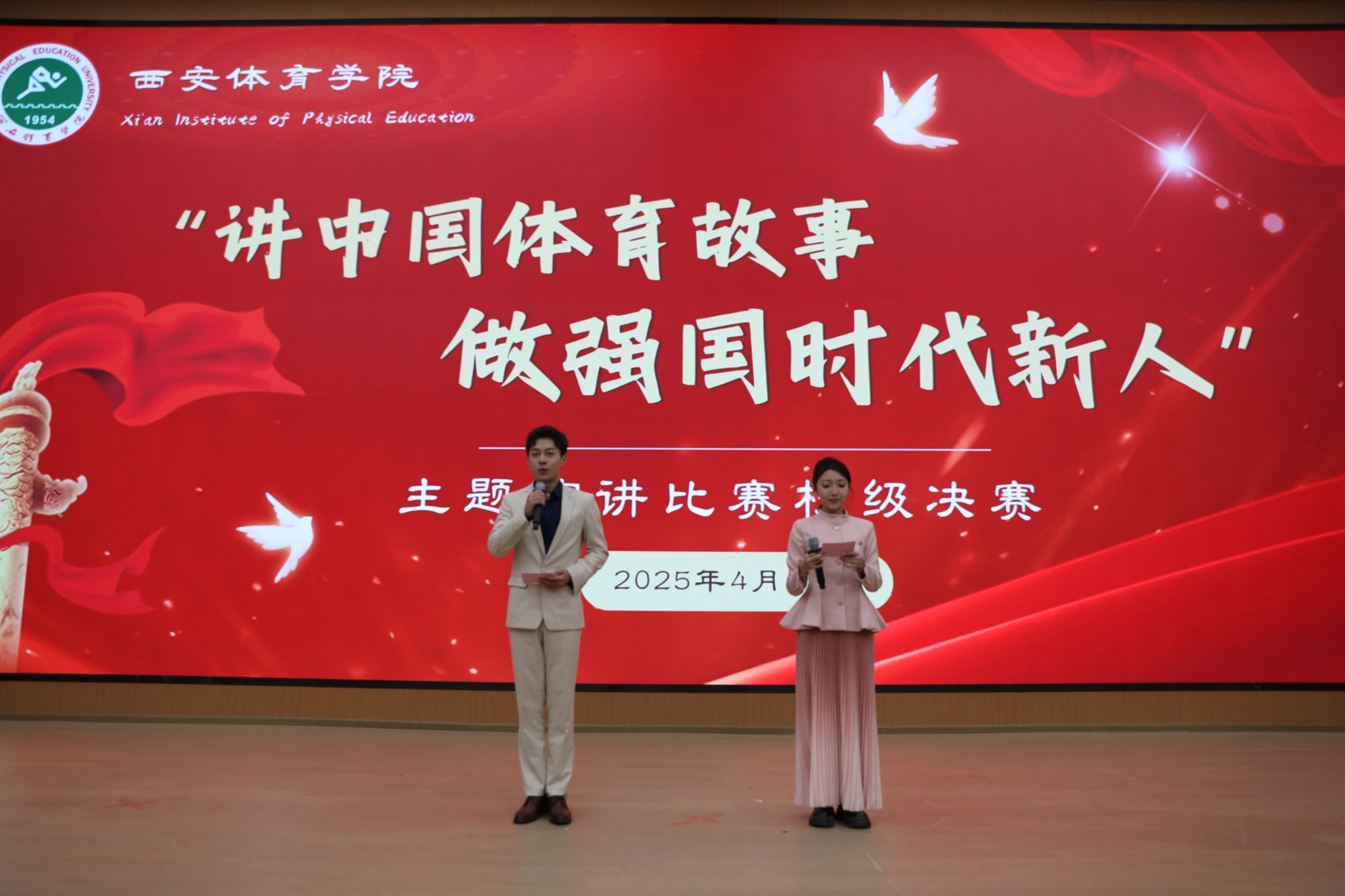 决赛于4月25日在西安体育学院鄠邑校区教学楼三楼报告厅举行,采取主题演讲和评委提问的方式进行,由评委老师依据内容质量、语言表达、演讲技巧、即兴问答、创新亮点、台风形象等六个维度进行现场打分,最终按照得分排定名次。现场气氛十分激烈,选手们通过生动的语言、深刻的见解,引发观众的思考和共鸣。