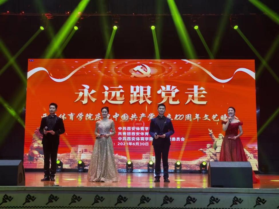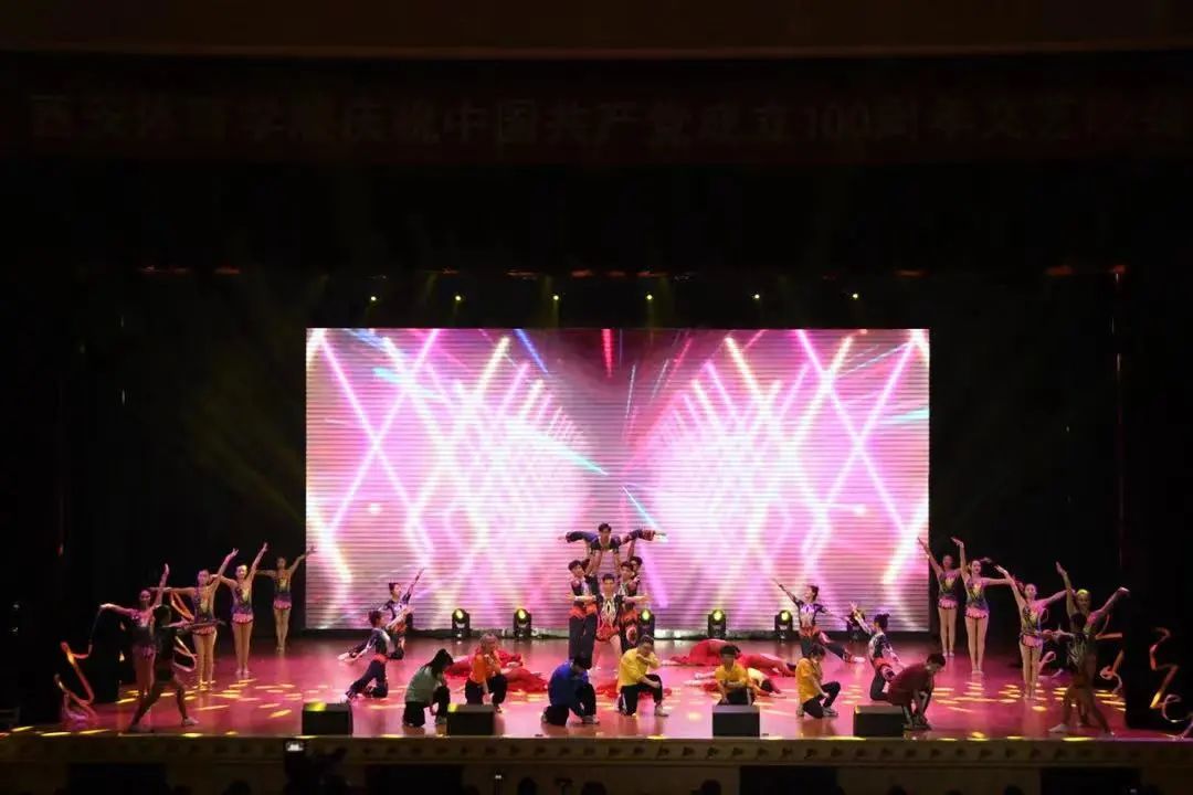 2021年6月30日晚,艺术学院的同学们在西安体育学院庆祝中国共产党成立100周年文艺晚会上精彩亮相,通过艺术的方式表达对党的感恩之心、崇敬之情。