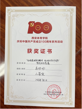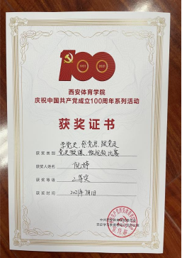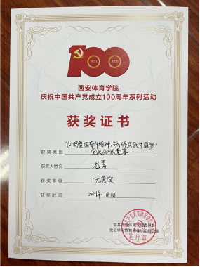 为庆祝中国共产党成立100周年,进一步引导全体师生传承红色基因,汲取奋进力量,用实际行动抒发爱国之心、报国之情、强国之志,将“学党史、悟思想、办实事、开新局”的要求落实在校园生活的方方面面,我院师生积极参与西安体育学院庆祝中国共产党成立100周年系列活动,并在本次系列活动中取得优异成绩,获奖如下: