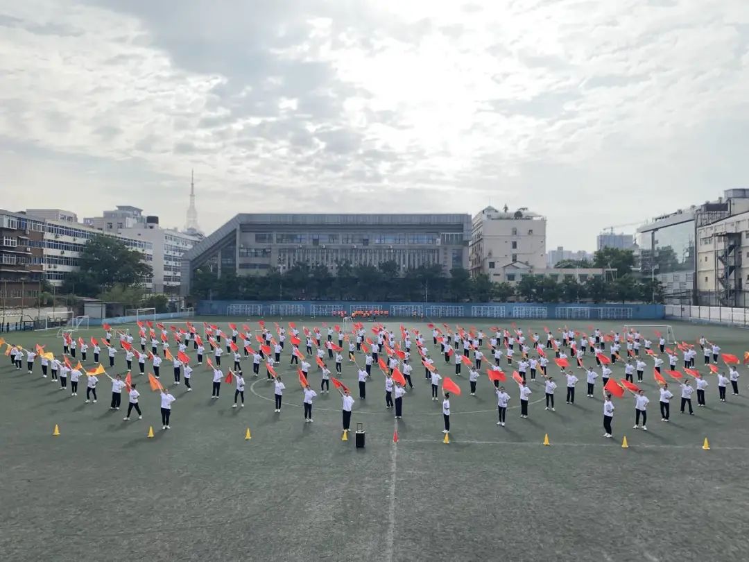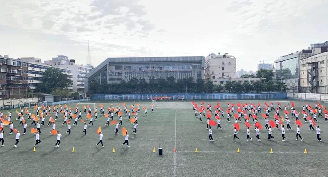此次大型团体操《党旗下的誓言》用不断变化的圆形、波浪、菱形等经典造型来展现百年奋斗路的艰辛,用红船造型展示中国革命精神之源的红船精神来激励和鼓舞全体师生坚定理想、百折不挠。