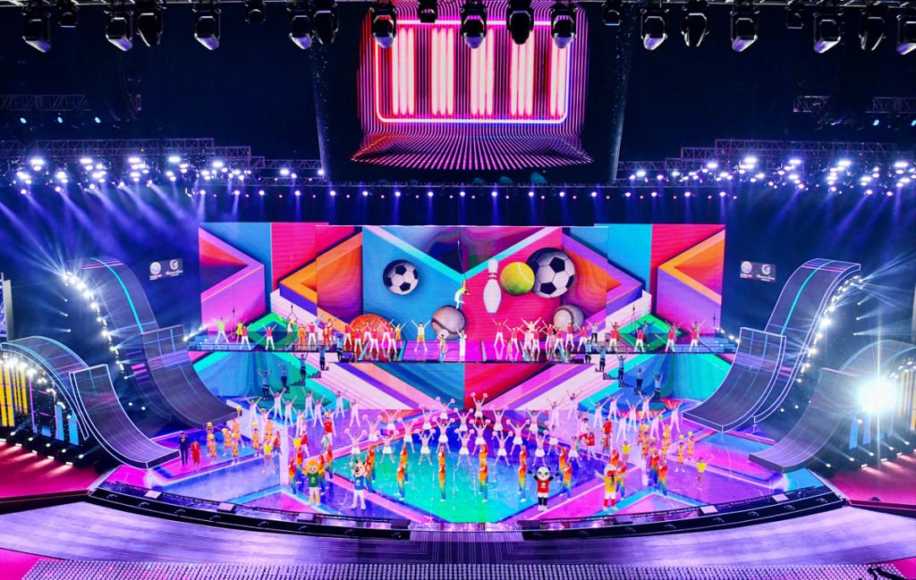 2021年6月7日20时,中华人民共和国第十四届运动会、全国第十一届残运会暨第八届特奥会倒计时100天活动在西安奥体中心拉开大幕。我院161名师生共同参与了本次活动,分别在《丝路长安》《绿水青山》《全民全运》《同心同行》四个篇章中献上了精彩表演。