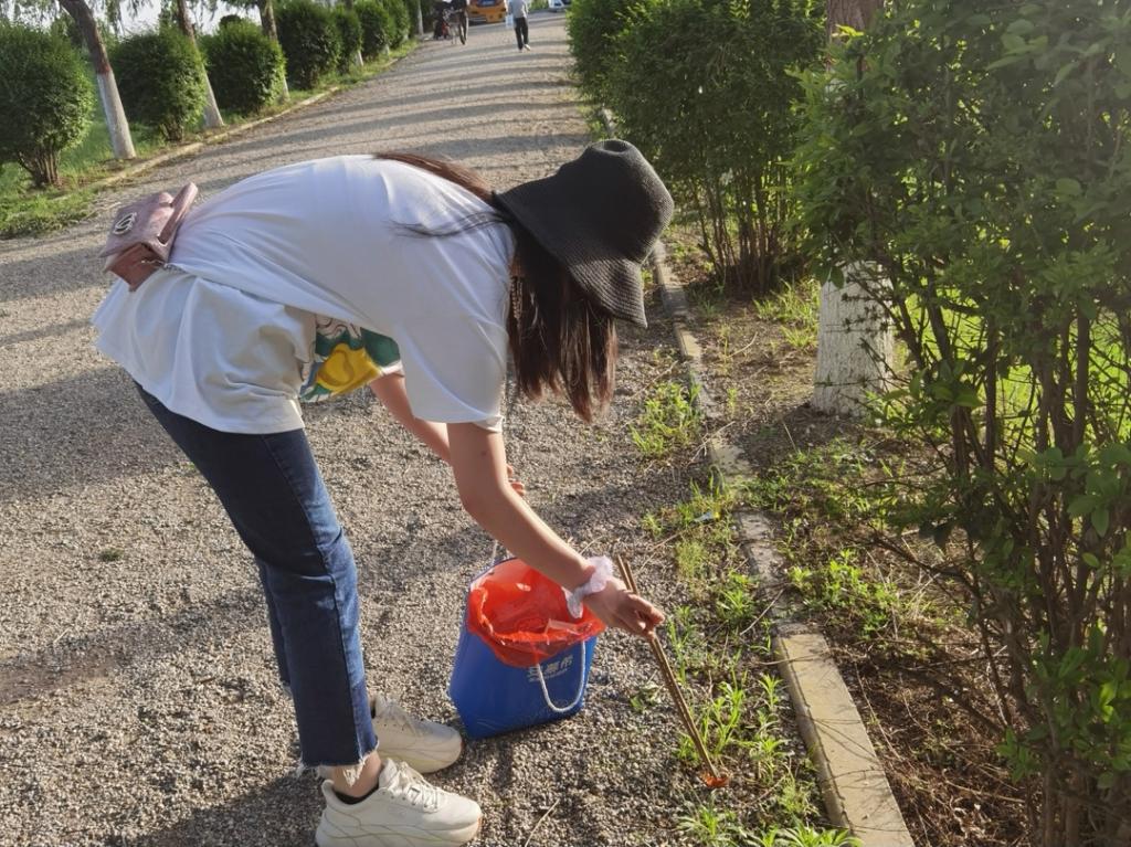 在河提公园捡拾垃圾,不仅美化环境保护水源,也警醒前来游玩的人们不乱扔垃圾,我院师生用实际行动为构建美好社会生活出一份微薄之力。