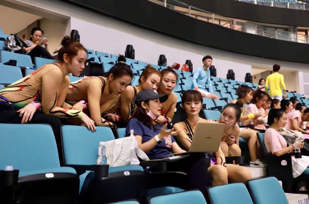 艺术体操的美女们休息也不松懈