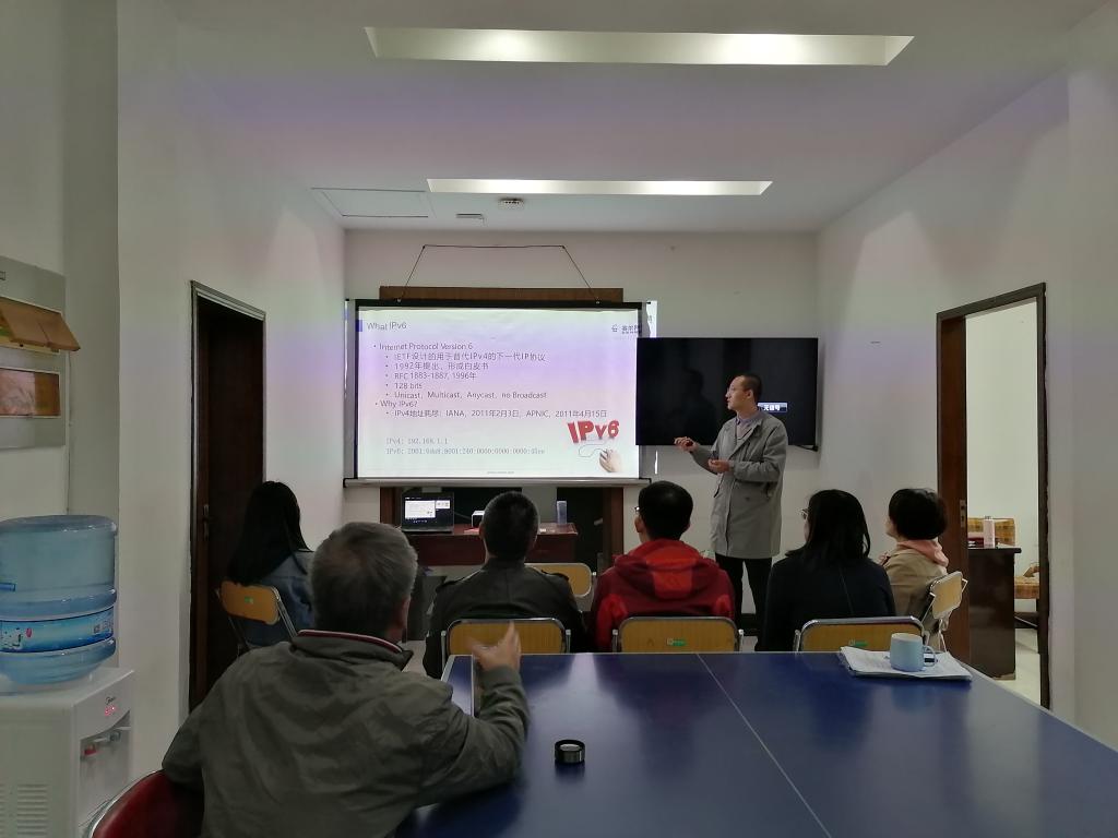 为更好地保障学校网络安全,加强信息化人才队伍建设,10月30日上午,网络管理中心在行政楼五楼组织开展了以下一代互联网(IPV6)技术为主题的专业培训。