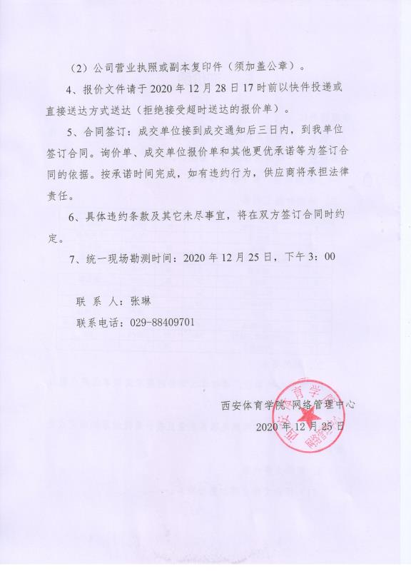 西安体育学院筒子楼网络抢修询价函