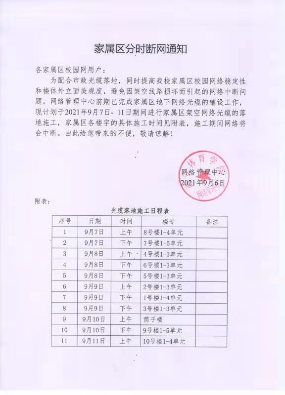 关于为我校鄠邑校区学生公寓办公用户开通网络的通知