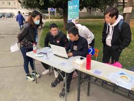 为保证本次活动能尽可能全面的服务到全校每一位师生,网络管理中心按照主要面向对象的不同将活动分为上、下午两场进行,地点分别定于我校食堂南门对面(主要面向学生用户)和1号行政楼外(主要面向教工用户)。首先,工作人员以展板、海报等形式对业务系统功能进行简单介绍;接下来,为用户分发了三个业务系统的使用手册;最后,针对感兴趣的用户提出的问题,工程师们使用笔记本电脑详细为其解答,并邀请用户直接参与体验系统功能。