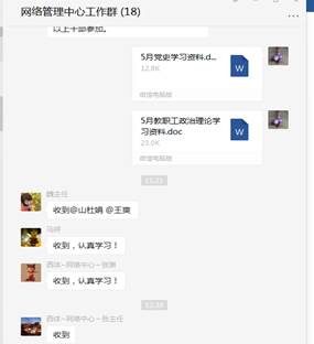 同时,网络管理中心党员通过微信群、公众号“党史学习教育”以及互联网中的各种资源进行着党史的分散学习。